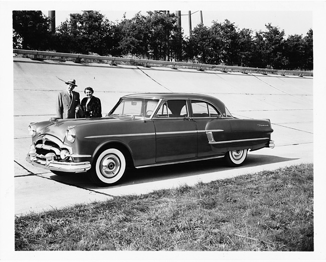 Still Image (1953)Part of Making of Modern Michigan1953 Packard sedan, left side view, parked on drive, cars in distance