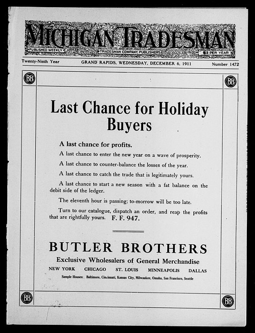 Michigan tradesman. Vol. 29 no. 1472 (1911 December 6)