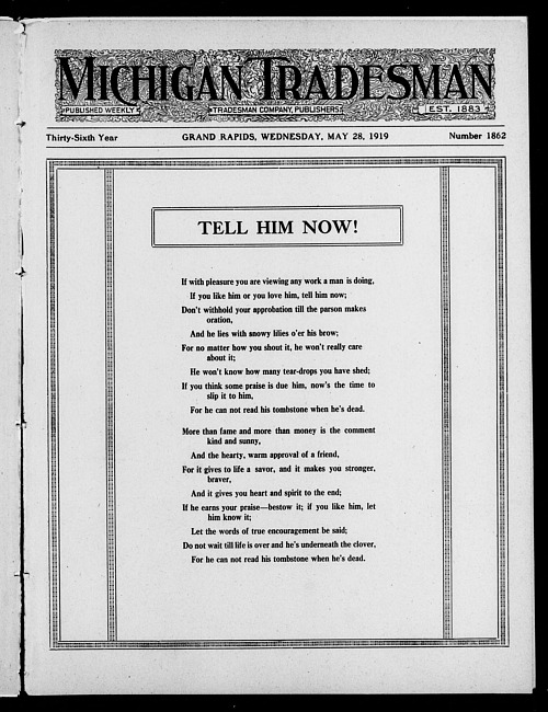Michigan tradesman. Vol. 36 no. 1862 (1919 May 28)