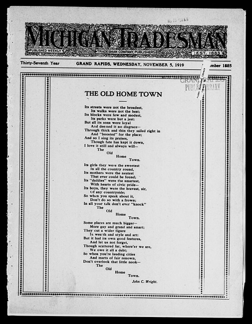 Michigan tradesman. Vol. 37 no. 1885 (1919 November 5)