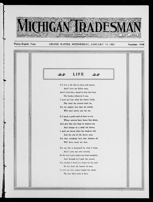 Michigan tradesman. Vol. 38 no. 1948 (1921 January 19)