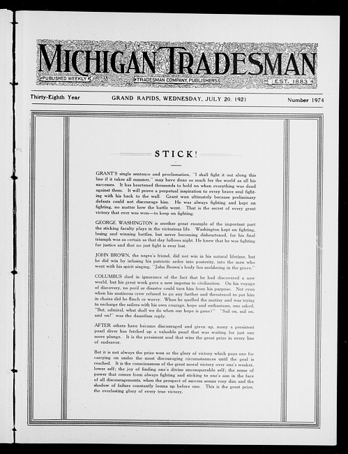 Michigan tradesman. Vol. 38 no. 1974 (1921 July 20)