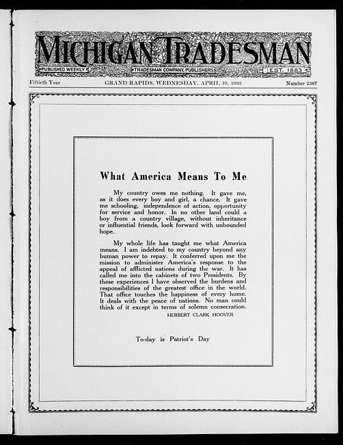 Michigan tradesman. Vol. 50 no. 2587 (1933 April 19)