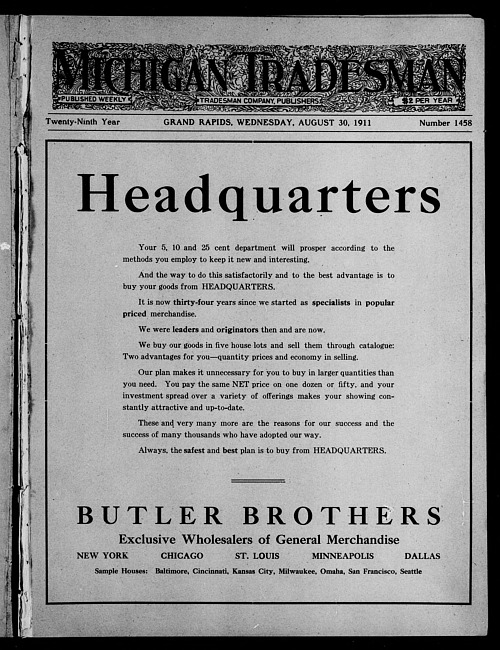 Michigan tradesman. Vol. 29 no. 1458 (1911 August 30)