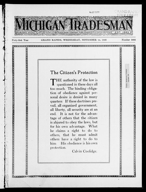 Michigan tradesman. Vol. 41 no. 2095 (1923 November 14)