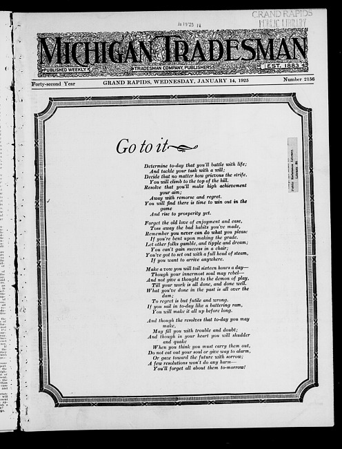 Michigan tradesman. Vol. 42 no. 2156 (1925 January 14)