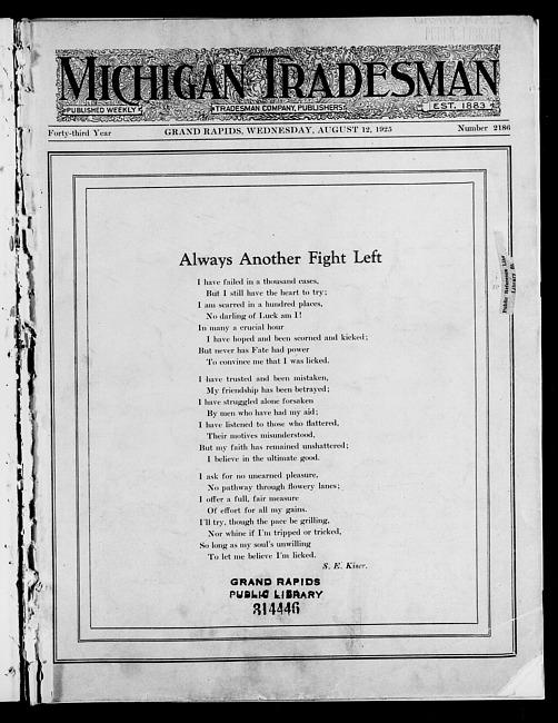 Michigan tradesman. Vol. 43 no. 2186 (1925 August 12)