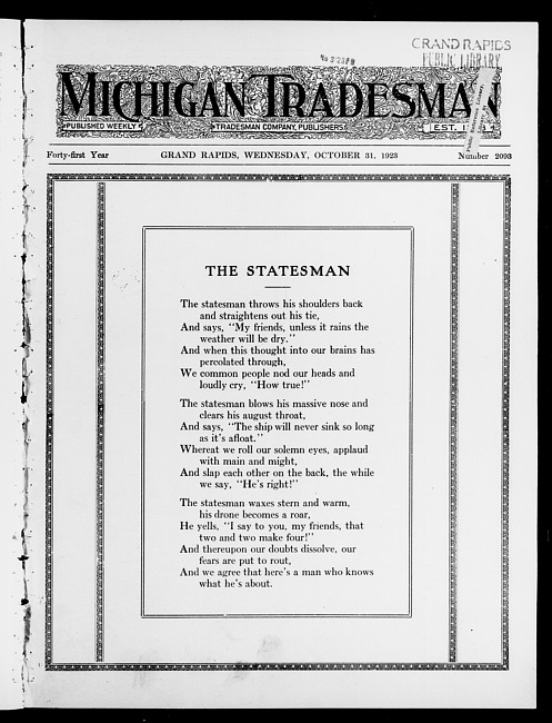 Michigan tradesman. Vol. 41 no. 2093 (1923 October 31)