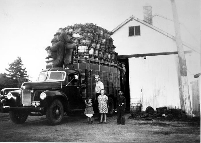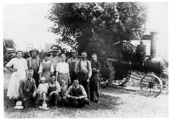 Albert and Marvin Hacker guide log into blade, Sterling Twp., Michigan