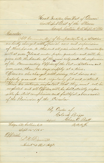 Circular from Colonel Briggs to the Head Quarters Cavalry