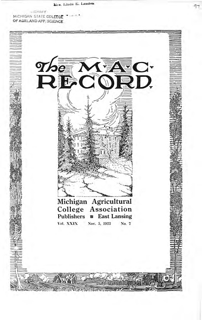 The M.A.C. record. Vol. 29 no. 7 (1923 November 5)