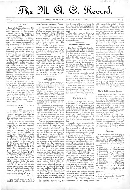 The M.A.C. record. Vol. 5 no. 33 (1900 May 8)