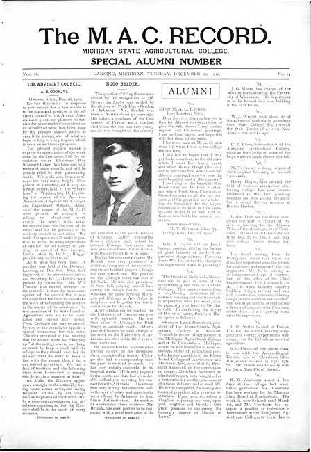 The M.A.C. record. Vol. 16 no. 14 (1910 December 20)