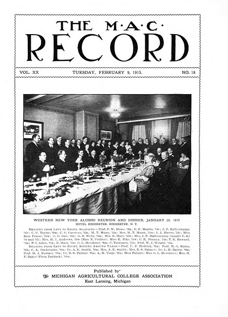 The M.A.C. record. Vol. 20 no. 18 (1915 February 9)