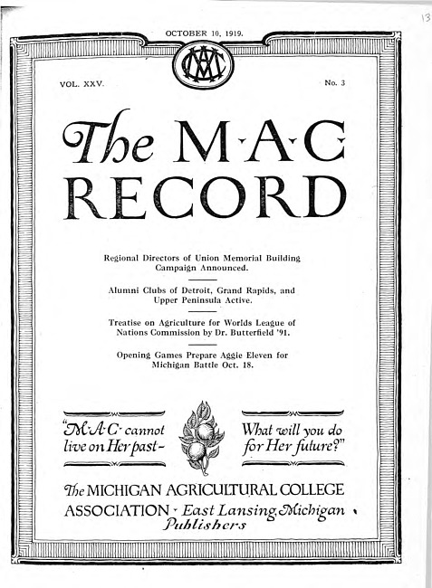 The M.A.C. record. Vol. 25 no. 3 (1919 October 10)