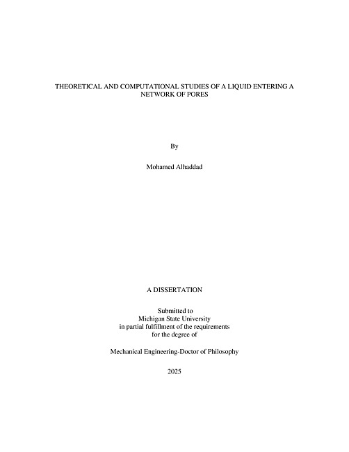 THEORETICAL AND COMPUTATIONAL STUDIES OF A LIQUID ENTERING A NETWORK OF PORES