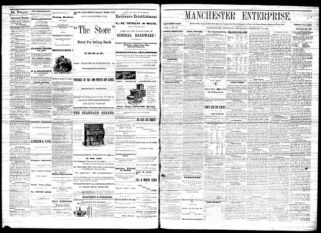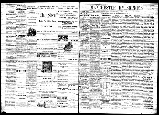 Text (1872)Part of Making of Modern MichiganManchester enterprise. Vol. 5 no. 20 (1872 February 15)