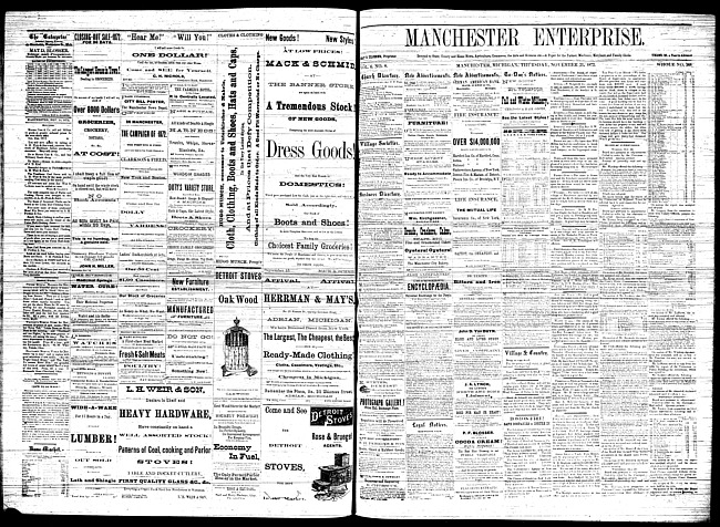 Text (1872)Part of Making of Modern MichiganManchester enterprise. Vol. 6 no. 9 (1872 November 28)