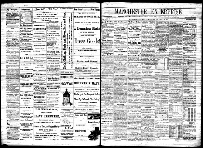 Text (1872)Part of Making of Modern MichiganManchester enterprise. Vol. 6 no. 10 (1872 December 5)