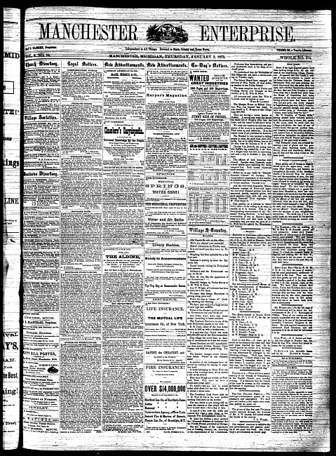 Text (1875)Part of Making of Modern MichiganManchester enterprise. Vol. 5 no. 17 (1872 January 25)