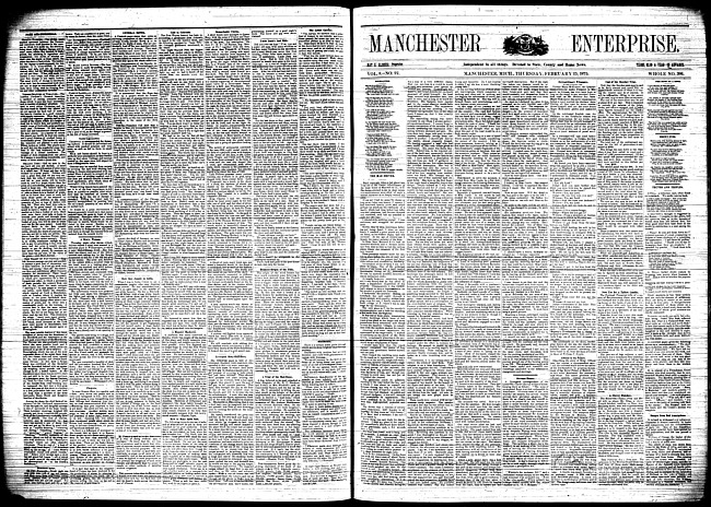 Text (1875)Part of Making of Modern MichiganManchester enterprise. Vol. 8 no. 22 (1875 February 25)