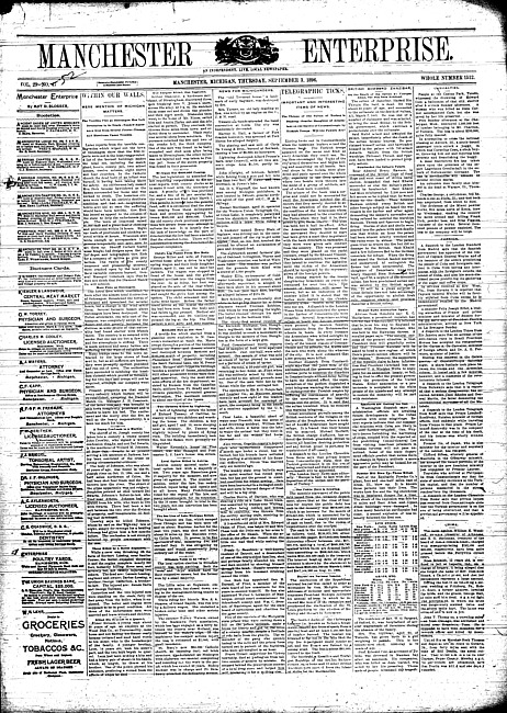 Text (1896)Part of Making of Modern MichiganManchester enterprise. Vol. 29 no. 52 (1896 September 3)
