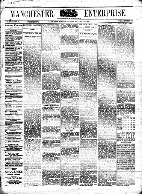 Text (1897)Part of Making of Modern MichiganManchester enterprise. Vol. 30 no. 52 (1897 September 2)