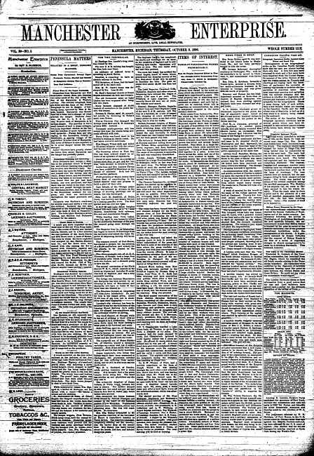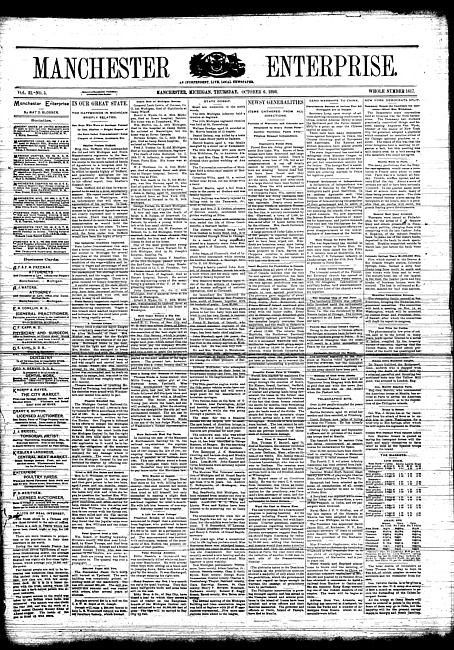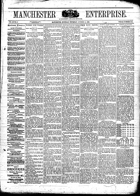 Text (1897)Part of Making of Modern MichiganManchester enterprise. Vol. 32 no. 8 (1898 October 27)