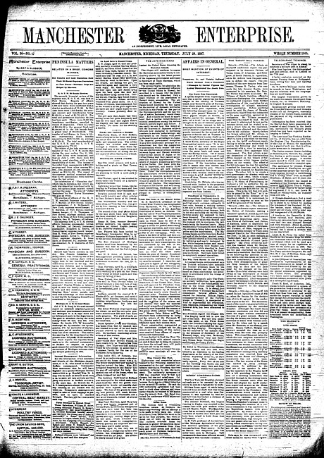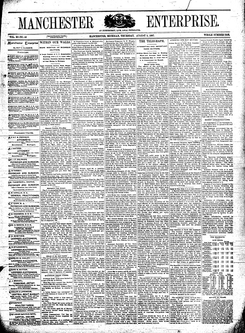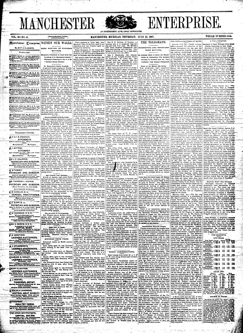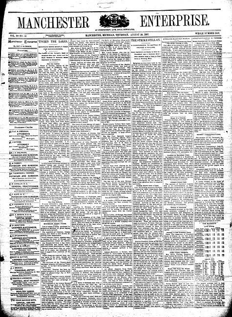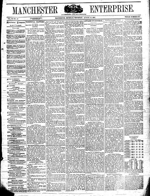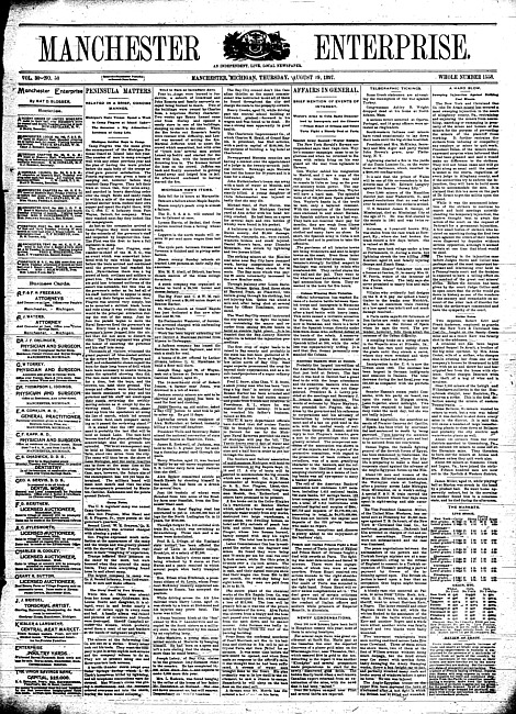 Text (1897)Part of Making of Modern MichiganManchester enterprise. Vol. 30 no. 50 (1897 August 19)