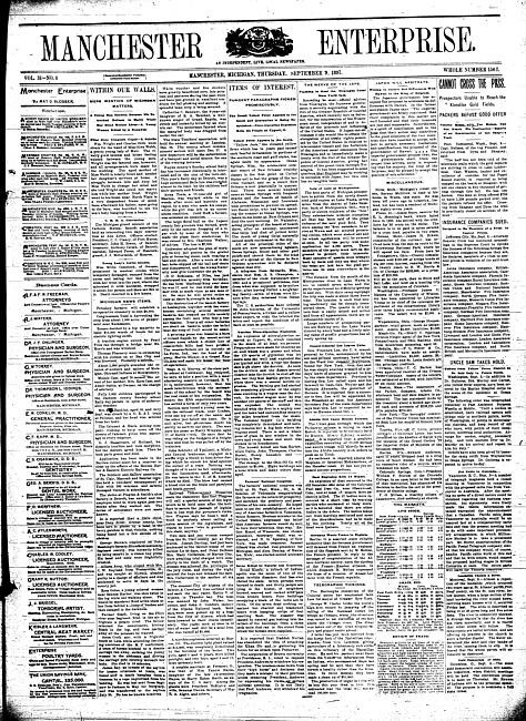 Text (1897)Part of Making of Modern MichiganManchester enterprise. Vol. 31 no. 1 (1897 September 9)