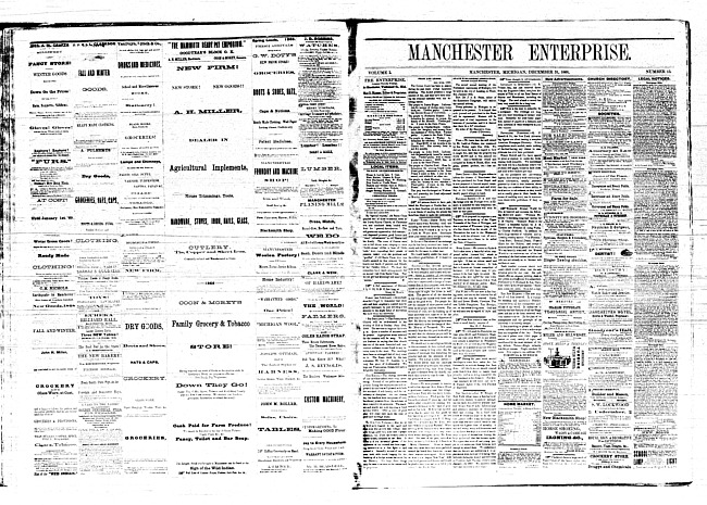 Text (1868)Part of Making of Modern MichiganManchester enterprise. Vol. 2 no. 13 (1868 December 31)