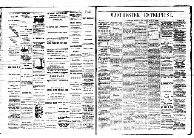 Text (1868)Part of Making of Modern MichiganManchester enterprise. Vol. 1 no. 48 (1868 September 3)