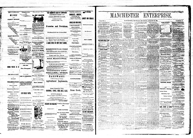 Text (1868)Part of Making of Modern MichiganManchester enterprise. Vol. 2 no. 50 (1869 September 16)