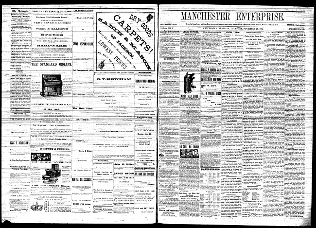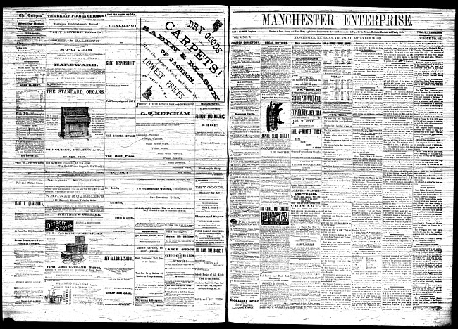 Text (1871)Part of Making of Modern MichiganManchester enterprise. Vol. 5 no. 9 (1871 November 30)