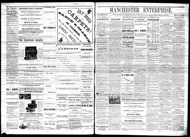 Text (1871)Part of Making of Modern MichiganManchester enterprise. Vol. 5 no. 7 (1871 November 16)