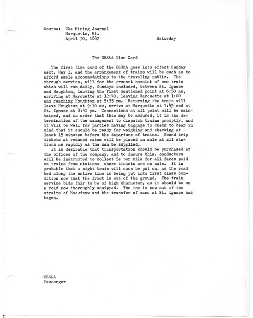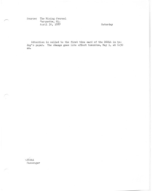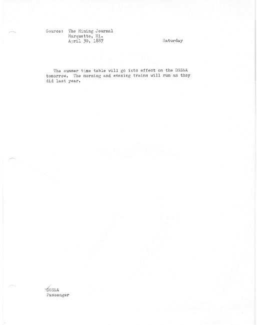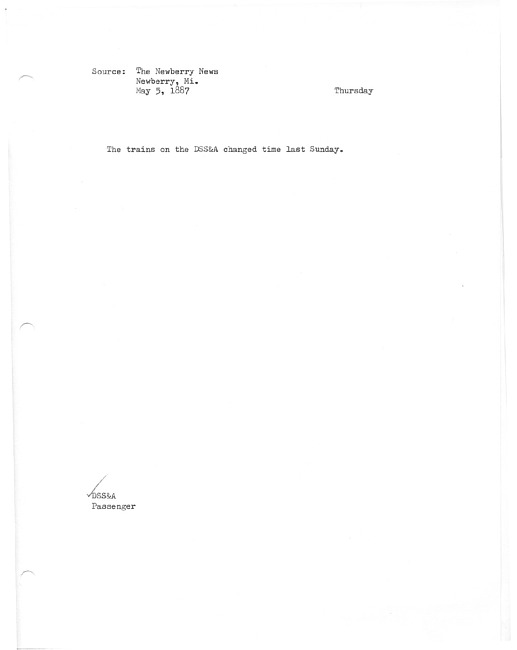Trains on the DSS&A changed time last Sunday