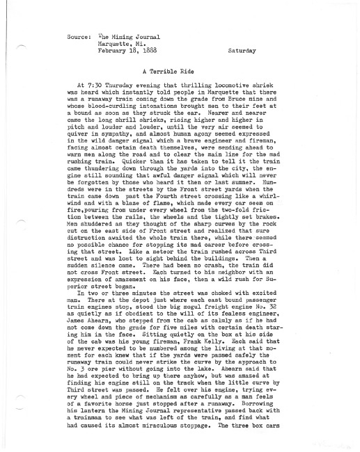 Negaunee- It is learned that conductors