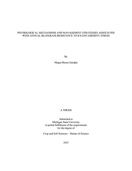 PHYSIOLOGICAL MECHANISMS AND MANAGEMENT STRATEGIES ASSOCIATED WITH ANNUAL BLUEGRASS RESISTANCE TO ICE ENCASEMENT STRESS