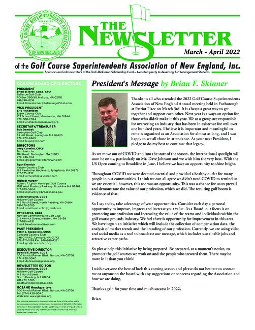 The newsletter of the Golf Course Superintendents Association of New England, Inc. (2022 March/April)