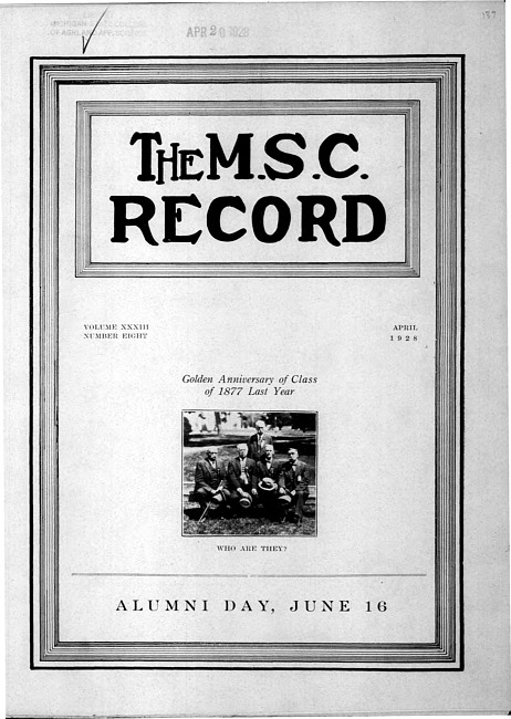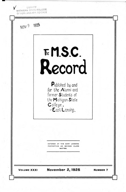 Text (1929)Part of M.A.C. Record (Serial 48)Michigan State College record. Vol. 36 no. 8 (1931 April)