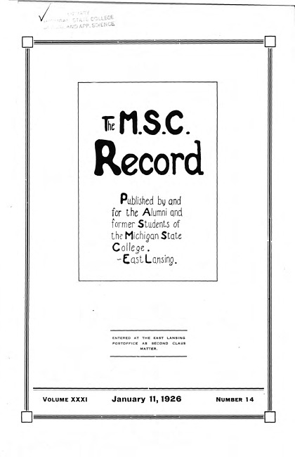 Text (1930)Part of M.A.C. Record (Serial 48)Michigan State College record. Vol. 37 no. 9 (1932 May)
