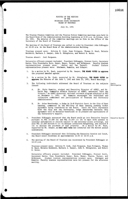 Meeting minutes, July 26, 1991