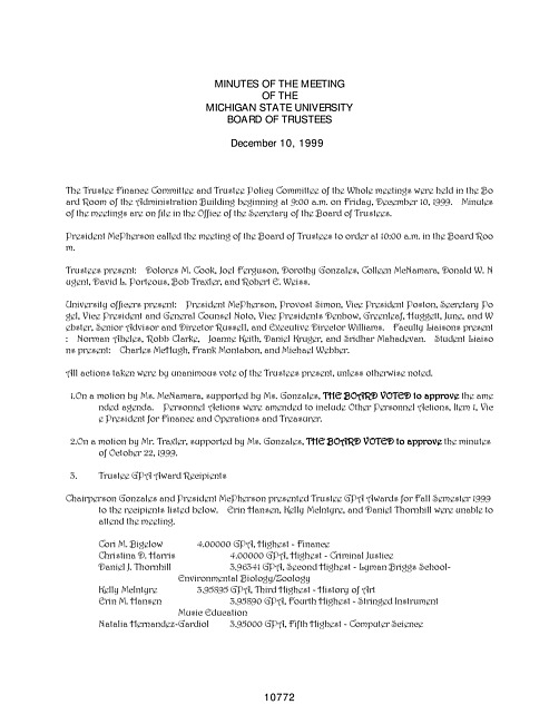 Meeting minutes, December 10, 1999