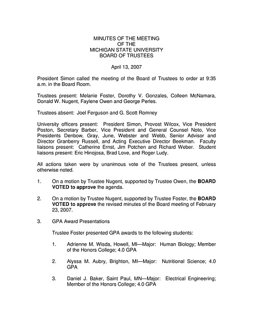 Meeting minutes, April 13, 2007