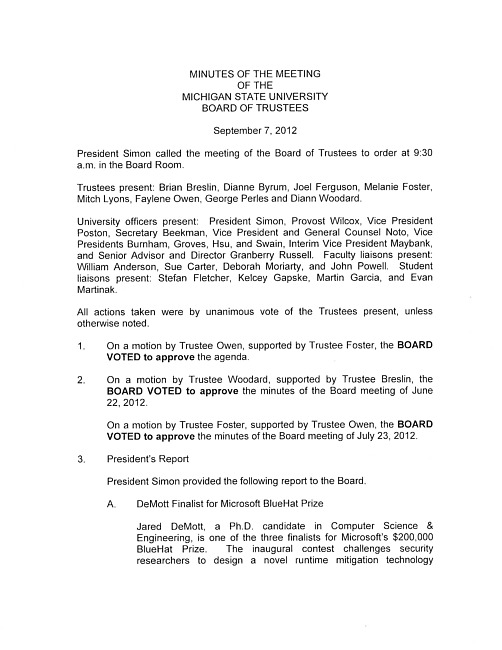 Meeting minutes, September 7, 2012