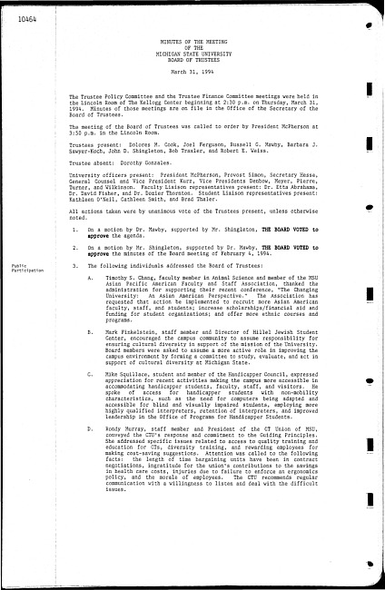 Meeting minutes, march 31, 1994