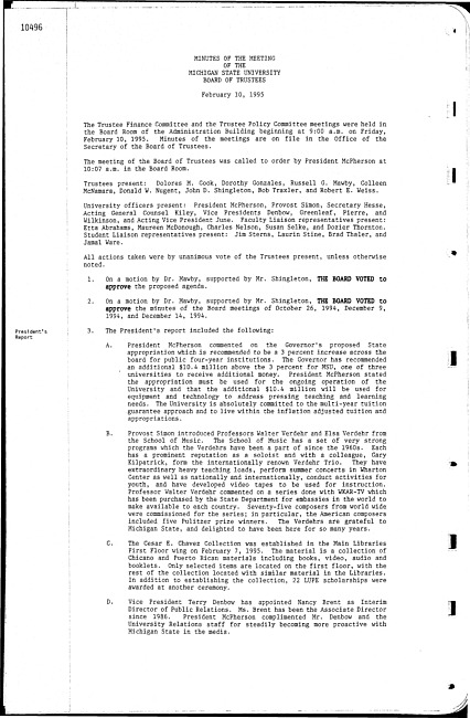 Meeting minutes, February 10, 1995