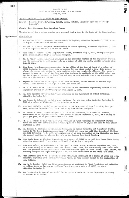 Meeting minutes, July 17, 1929