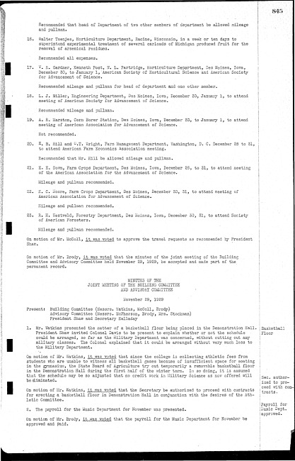 Meeting minutes, November 29, 1929