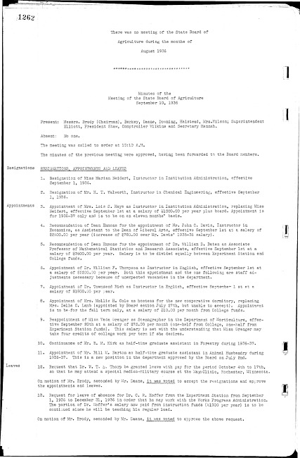 Meeting minutes, September 10, 1936